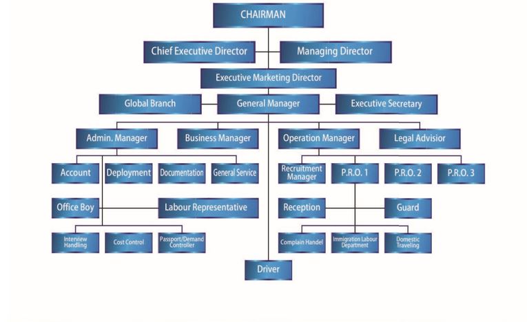 Sunsari Overseas Pvt. Ltd, a leading manpower agency, operates with a well-defined organizational structure designed to facilitate efficiency and excellence in service delivery. At the helm is our dedicated leadership team, providing strategic direction and vision for the organization. Our Recruitment team sources and evaluates potential candidates, ensuring a pool of skilled and qualified professionals. This structured approach enables Sunsari Overseas to effectively navigate the complexities of the manpower industry, delivering quality workforce solutions to our valued clients.